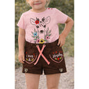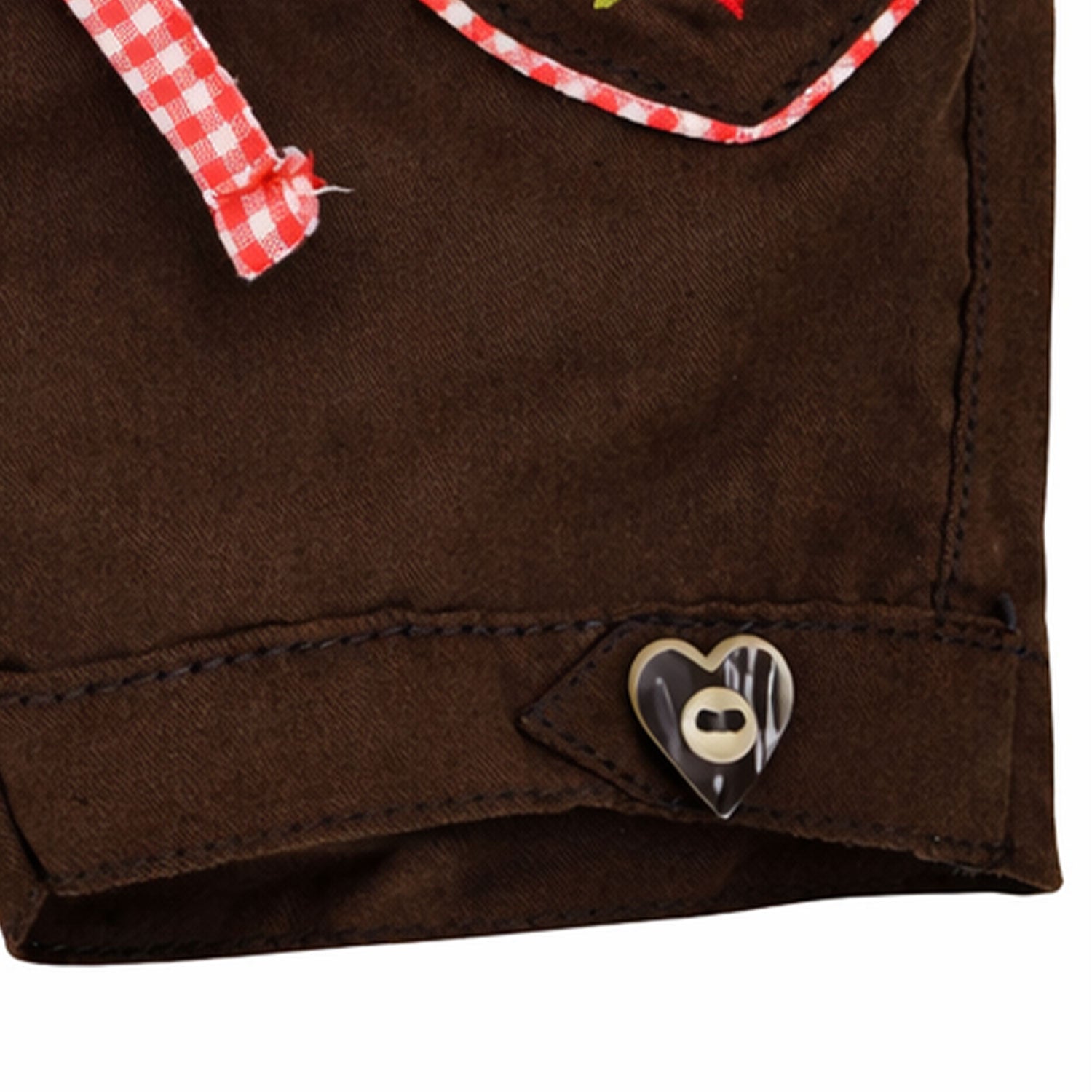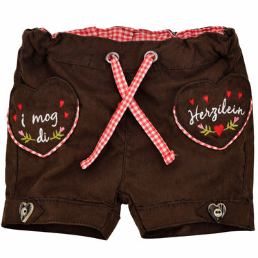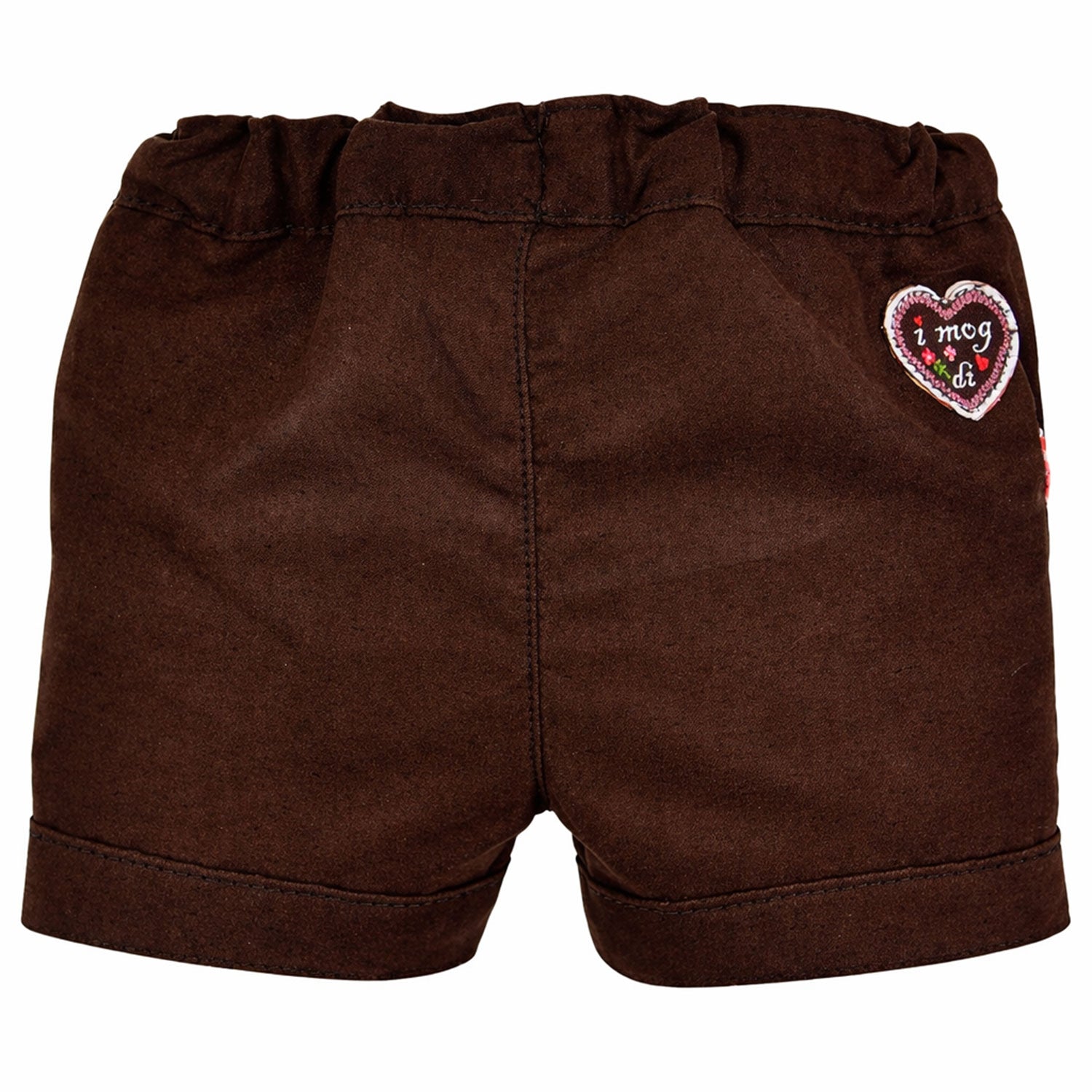 BONDI Mädchen Kunstleder Shorts „Alpenglück“ 86764 | Farbe Braun | Trachten-inspirierte Lederoptik | Elastischer Bund mit Kordel | Herz-Taschen mit Stickerei | Hochwertige Verarbeitung vom deutschen Markenhersteller BONDI Kidswear.