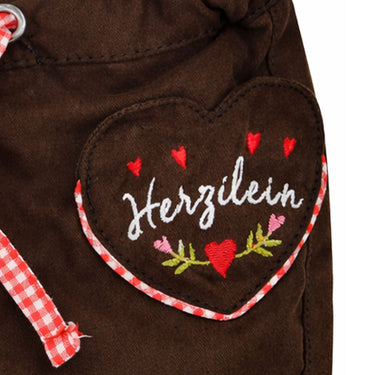 Besonderer Blickfang sind die aufgesetzten Herz-Taschen auf der Rückseite. Mit zarten Stickereien wie „i mog di“ und „Herzilein“ sowie kleinen Herz-Details versprühen sie pure Alpenliebe. Auch feine Ziernähte und kleine Herz-Applikationen am Beinabschluss machen diese Mädchen Shorts zu einem echten Hingucker. Das Modell „Alpenglück“ steht für verspieltes Design, hochwertige Verarbeitung und liebevolle Details, die jedes Outfit zu etwas Besonderem machen.