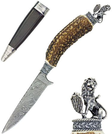 Funk Hirschhorn Trachtenmesser mit Damastklinge und Zierfigur | Bayerischer Löwe