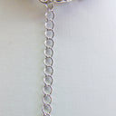Der mit Swarovski Strass besetzte Herzanhänger ist mit einer kleinen Rose verziert und wird mit einem kleinen Edelweiß am Satinband getragen. Das Halsband wird mit einem Karabinerhaken geschlossen und besitzt noch ein kleines Verlängerungskettchen.