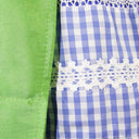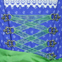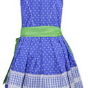 Dieses Jugend Dirndl von Isar Trachten aus der Kollektion ´Fräulein Prachtvoll´ ist ein echter Hingucker. Das wunderschöne blaue Kleid ist mit vielen kleinen weißen Streublumen besetzt und wird am Ausschnitt wie auch am Saum des Kleides mit weißer Spitze verziert. Die Spitze am Kleidsaum fasst einen blau weiß karierten Stoff ein, welcher sich schön vom Rest des Dirndl abhebt. Der Reißverschluss am Rücken erleichtert das An- und Ausziehen und die Schnürung aus einem Band in Seidenoptik, welche von Ösen in Blumenform gehalten wird, gibt dem Dirndl noch schöne Akzente. Die frische apfelgrüne Satinschürze rundet das Kleid ab.