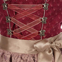 Unser bezauberndes Jugend Dirndl Vanessa von Isar-Trachten für Mädchen und Teenager ist mit viel Liebe zum Detail gefertigt und wird Sie und Ihre Tochter mit Sicherheit begeistern. Das Oberteil des festlichen Jugenddirndls ist in Bordeauxrot gehalten und hat ein florales Design. Am Dekolleté befindet sich eine hübsche Rüsche, die Miederschnürung wird mit einem Organzaband gebunden. Schön verzierte silberne Miederhaken halten das Band, geschlossen wird das Mädchendirndl im Rücken mit einem Reißverschluss. Der Rock des Trachtenkleides ist aus einem einfarbigen, leicht glänzenden Material hergestellt und bildet einen schönen Kontrast zum Oberteil. Highlight ist hier die Spitzenschürze in einem zarten Altrosa, die das Dirndl perfekt abrundet. Ein zauberhaftes Trachtenkleid für feierliche Anlässe und Hochzeiten, aber auch besonders schön für den Besuch beim Volks- oder Oktoberfest.
