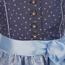 Unser bezauberndes Dirndl Valerie von Isar-Trachten für Mädchen und Teenager ist mit viel Liebe zum Detail gefertigt und wird Sie und Ihre Tochter mit Sicherheit begeistern. Das Kleid ist etwas kürzer geschnitten und endet so unterhalb des Knies. Ein zartes Blümchenmuster ziert das Oberteil des festlichen Dirndls, am Ausschnitt befindet sich eine hübsche Rüsche, die von einer zarten Spitzenbordüre eingerahmt wird. Schön verzierte silberne Perlknöpfe auf der Knopfleiste setzen zusätzlich Akzente. Der Rock des Trachtenkleides ist aus einem fein-karierten Baumwollstoff hergestellt und bildet zusammen mit der Schürze einen schönen Kontrast zum Oberteil. Ergänzt wird das süße Kleid durch eine weiße Halbarm-Dirndlbluse, die an den Ärmeln und am Ausschnitt mit zarter Spitze eingefasst ist. Highlight ist hier die leicht glänzende Schürze mit Blumenranken in einem zarten Hellblau, die das Dirndl perfekt abrundet. Ein zauberhaftes Trachtenkleid für feierliche Anlässe und Hochzeiten, aber auch besonders schön für den Besuch beim Volks- oder Oktoberfest.