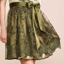 Die floral bestickte Schürze rundet das Dirndl auf stilvolle Weise ab. Die zarten Blumenstickereien verleihen dem Dirndl eine zusätzliche Dimension und bringen das romantische Design perfekt zur Geltung. Sie fügen eine elegante, fast poetische Note hinzu und verbinden gekonnt moderne Eleganz mit traditionellem Flair. Diese liebevoll gestaltete Schürze unterstreicht den Charme des Dirndls und sorgt dafür, dass du bei jeder Veranstaltung nicht nur gut gekleidet bist, sondern auch mit einem Hauch von Raffinesse und Feminität brillierst.