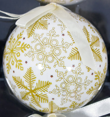 Kunststoff Weihnachtskugeln 6cm 12-tlg. - Schneeflocken Weiß Gold