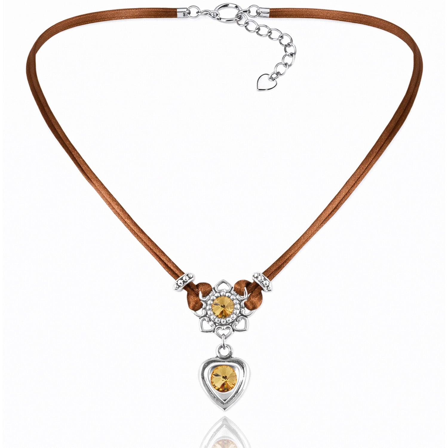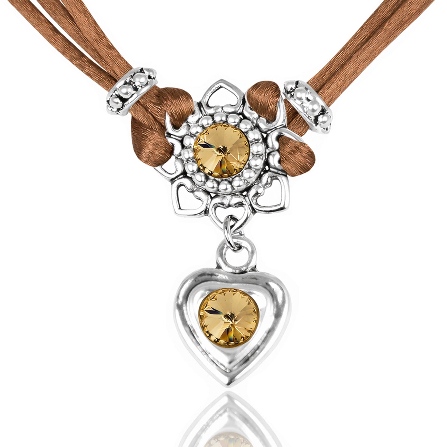 LUISIA Halskette "Chiara" mit Herzblüte, Strassherz und Premium Kristallen | Braun