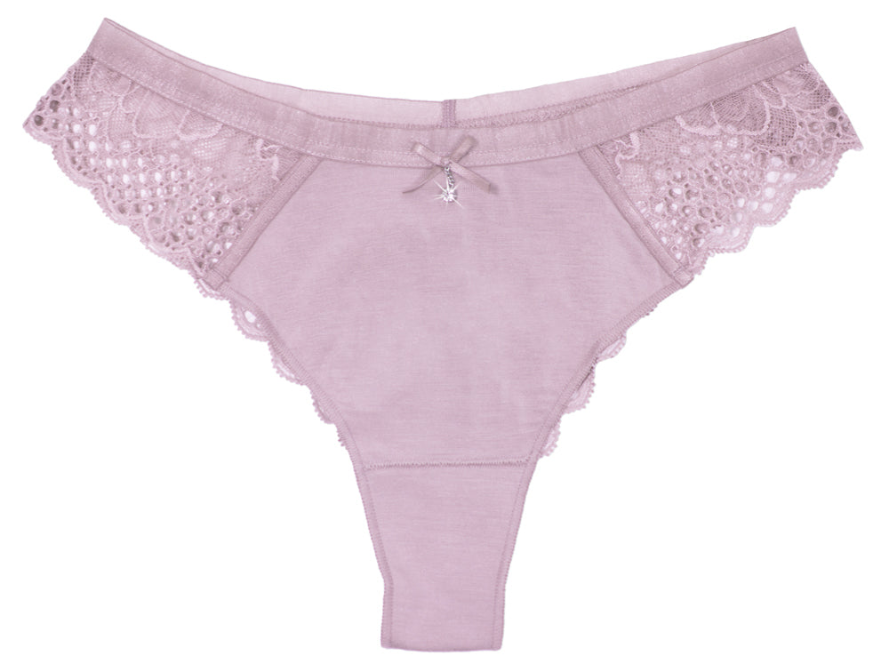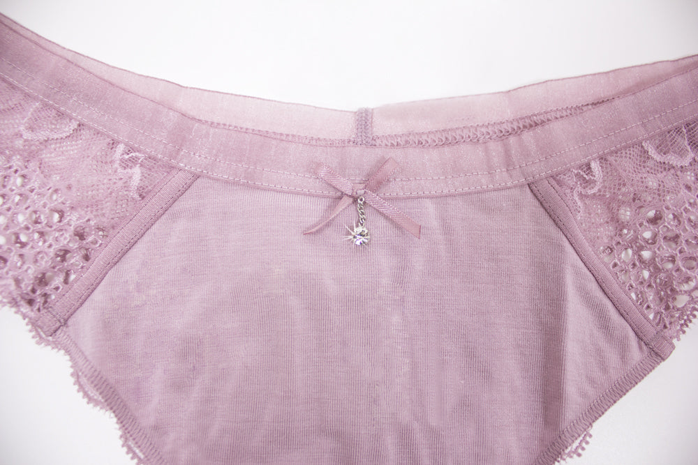 Schöner und angenehm zu tragender Slip in hellem Lilaton, passend zu unserem Push up BH.