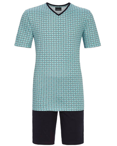 RINGELLA Herren Kurzarm Pyjama "Necktie" mit Bermuda Hose 4241306 | Mykonos Blau